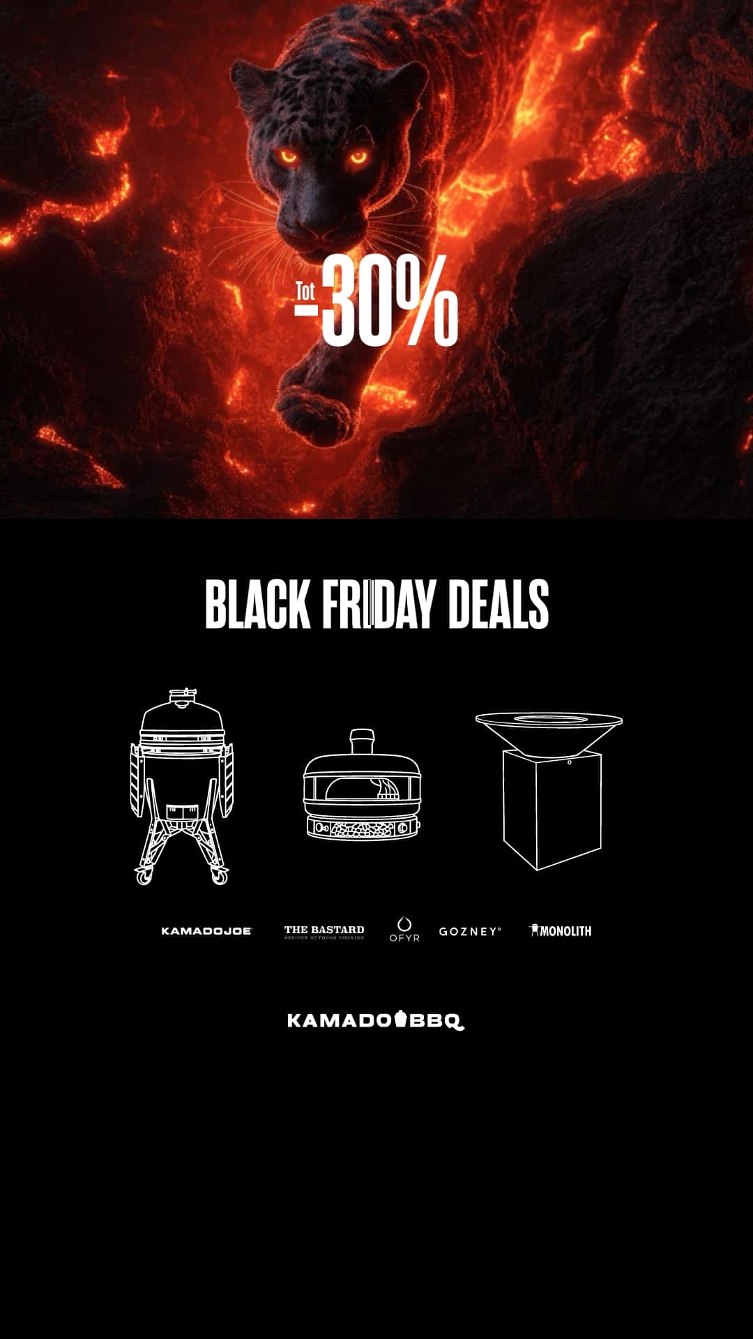 Onze spectaculaire BLACK FRIDAY acties staan voor je klaar, met geweldige deals op BBQ-toestellen en kortingen op bijna alle producten in onze webshop. Het perfecte moment om je droom-BBQ of accessoires aan te schaffen!