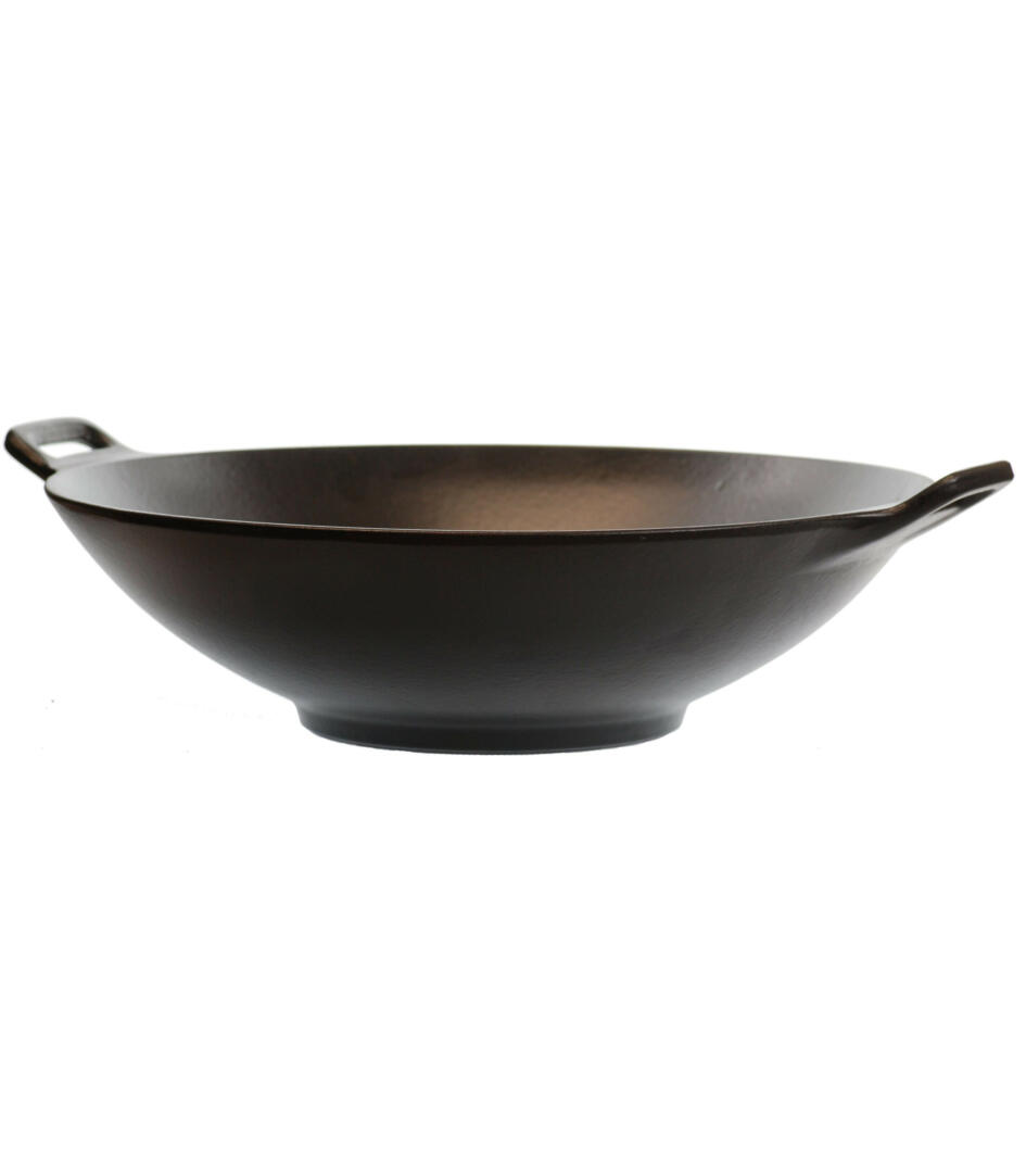 The cast iron is extremely well suited to retain the heat and divide it equally over the wok. The balanced design ensures that it stands steady on each cooking surface and the two handles makes it easy to move.