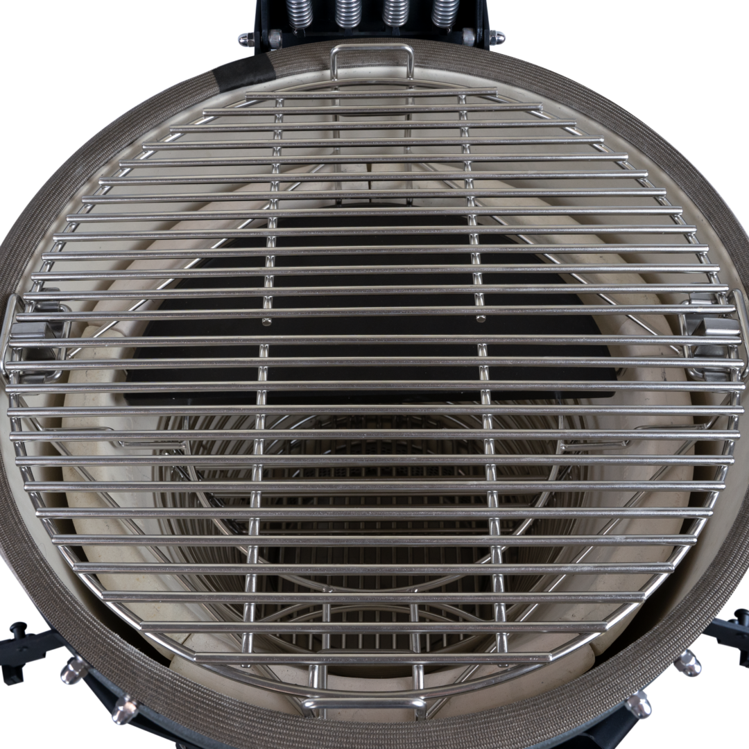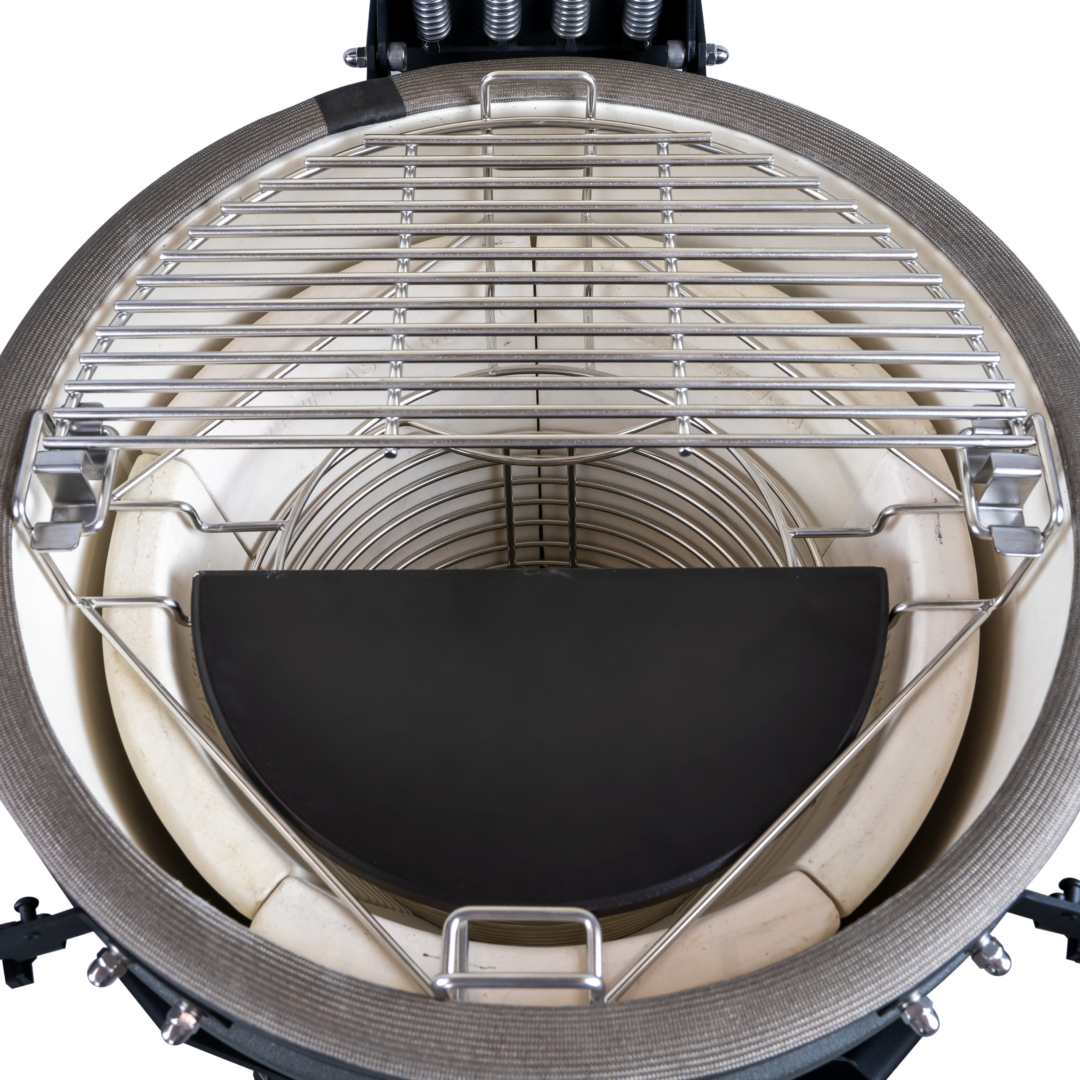 Comprend: Système de cuisson à plusieurs niveaux, panier à charbon et élévateur du bac à cendres.