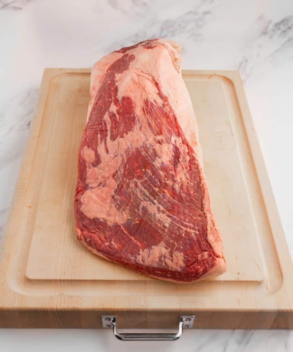 - Wrijf de brisket in met mosterd als binder en bestrooi royaal met een mix van zeezout, zwarte peper en knoflookpoeder.