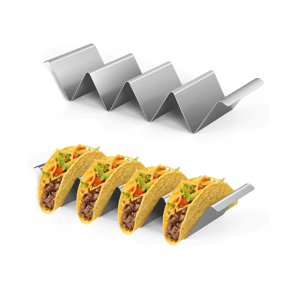 Perfect voor het grillen, serveren en vullen van je favoriete taco’s zonder knoeien. Gemaakt van hittebestendig en duurzaam roestvrij staal, ideaal voor gebruik op de BBQ of aan tafel.
